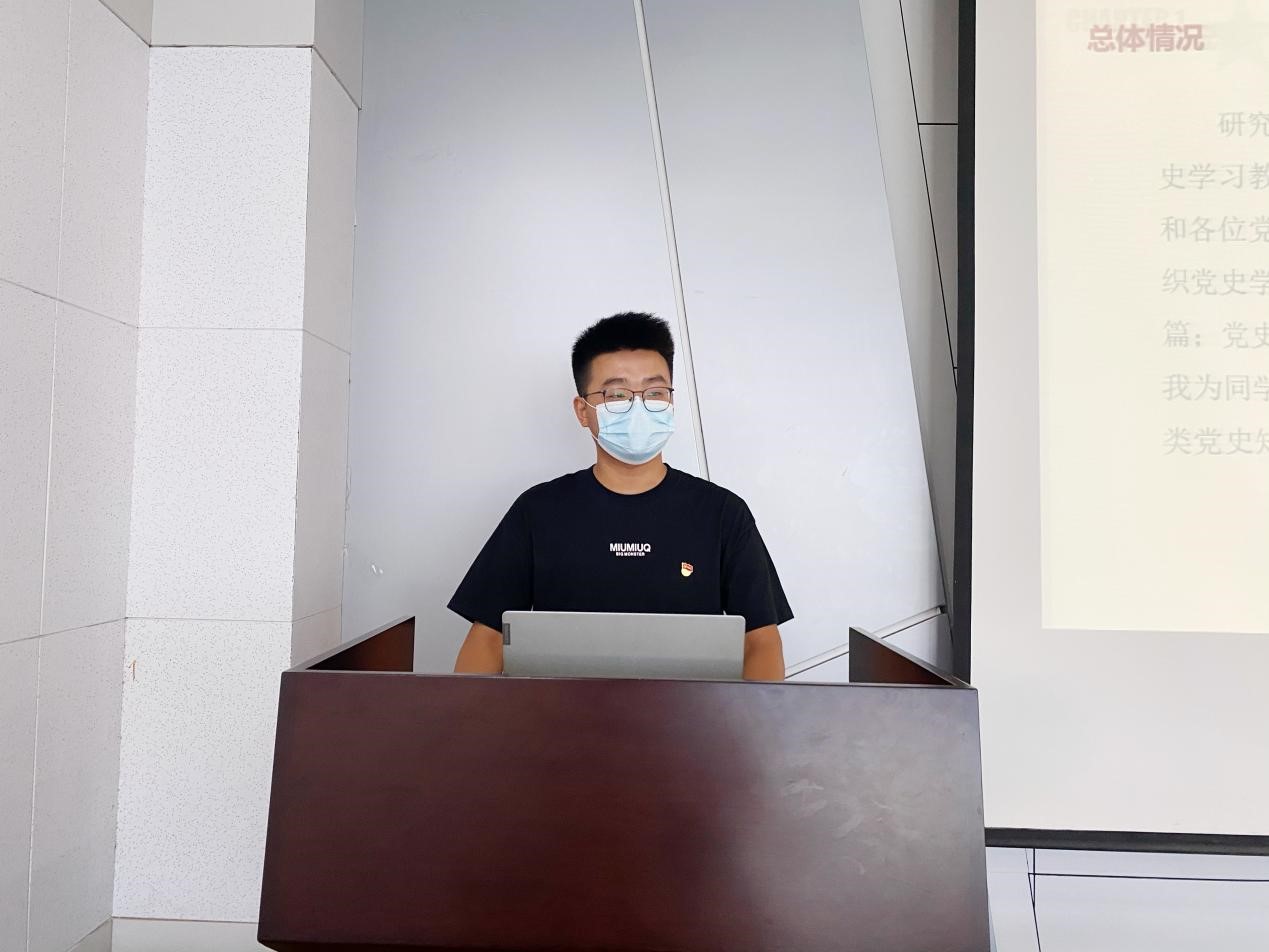 最后王梦倩老师对支部党史学习教育开展情况进行肯定的同时,也指出支部现存问题,对支部所有党员提出了四点要求:一要树立正确的学习观,理论和实践学习都要抓,从问题出发,不要固于形式;二要牢记党的宗旨,办实事以人文本,要做到持续推进,不可虎头蛇尾;三要主动承担青年应承担的责任,先提高自身本领,再结合自身专业帮扶身边同学;四要砥砺奋进,努力奋斗,学以致用,学党史,落实处。
