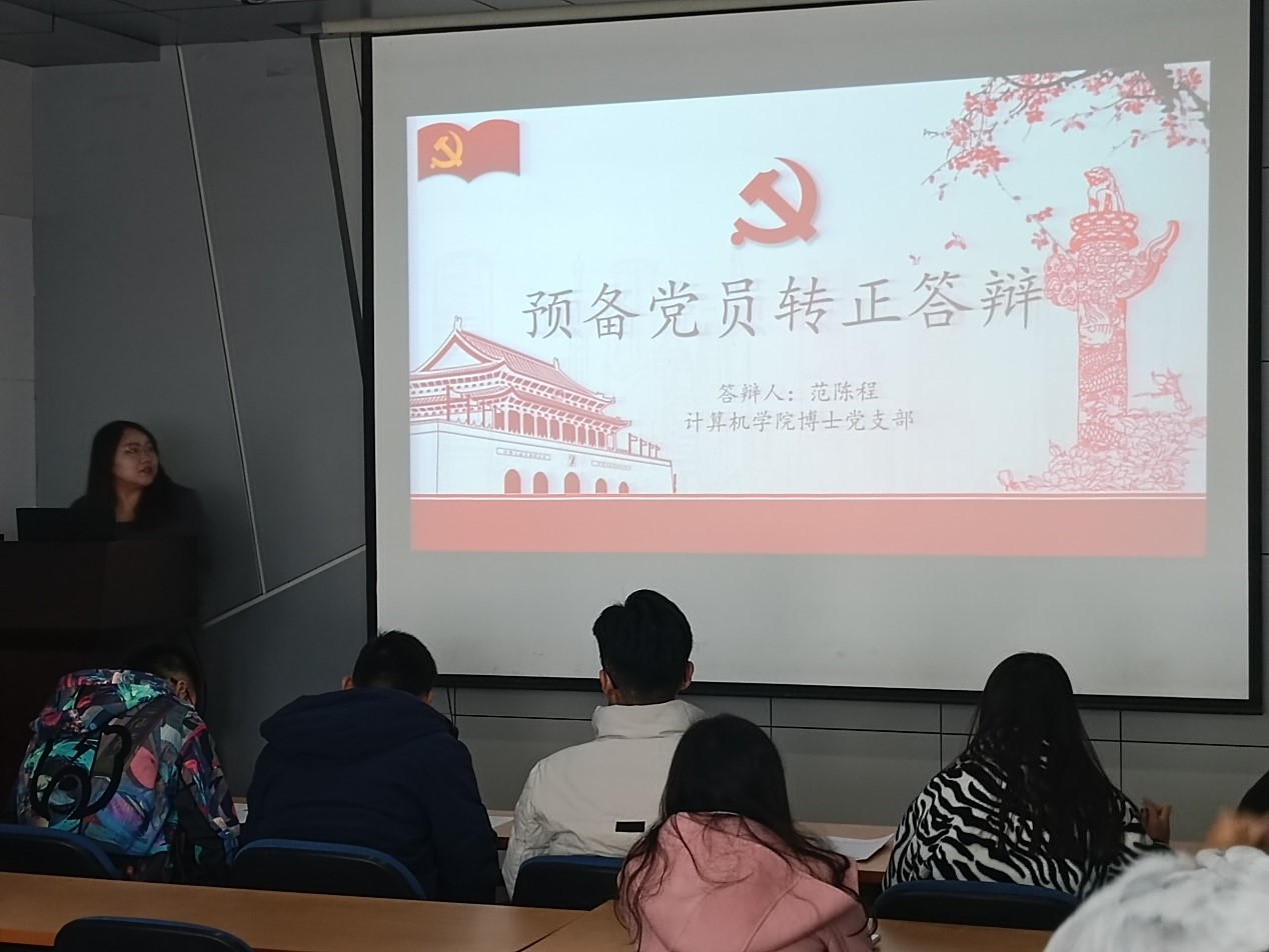 会上,九位申请转正的预备党员依次汇报了在预备期间的思想进步情况、工作表现等,并谈论了自己对于党员的理解和认识,总结了自己在生活、学习和工作中存在的不足之处和改进情况。接着转正答辩评委针对九位同志所介绍的自身情况提出问题,对各位同志党的理论知识的掌握情况进行考核,并提出了相应的建议。