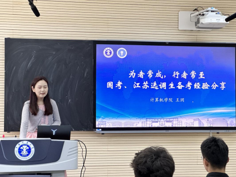 王玥学姐以自身参加国家公务员考试、江苏选调生考试及事业单位校园招聘的经历为切入口,详细介绍了不同类型公考的题型、备考策略及注意事项。她强调,备考应以“效率”为目标,注重实战演练和模拟考试,合理安排做题顺序。她讲解了江苏选调生、事业单位的报名、岗位要求及待遇,鼓励同学们结合自身情况,科学选择报考方向。