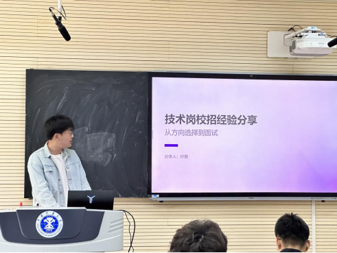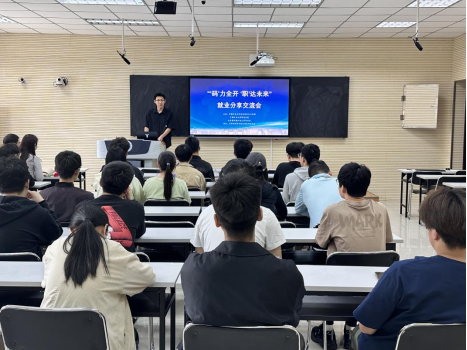 为帮助同学们明确职业发展方向,提升就业竞争力,解答大家求职过程中的疑惑,公司于4月24日下午在学院楼A306举办“‘码’力全开 ‘职’达未来”就业分享交流会。本次活动邀请到王玥、吴本钰、付傲、杜畅、许靖昊五位25届优秀研究生进行分享,学院部分研究生参加,活动由学院研究生会主席吕骏鹏主持。